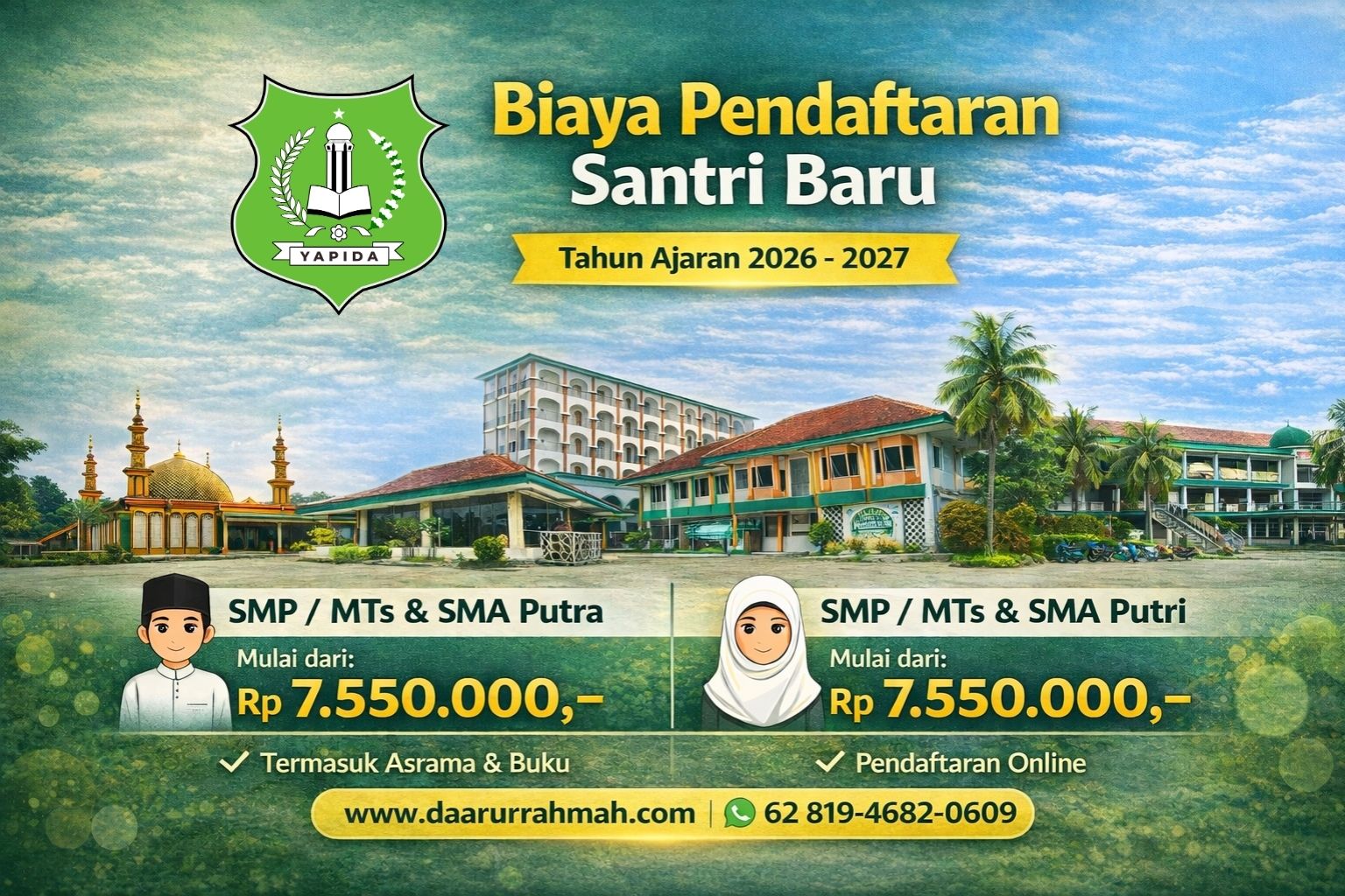 Rincian lengkap investasi pendidikan untuk Tahun Ajaran 2026/2027 di Pondok Pesantren Darurrahmah Yapida.